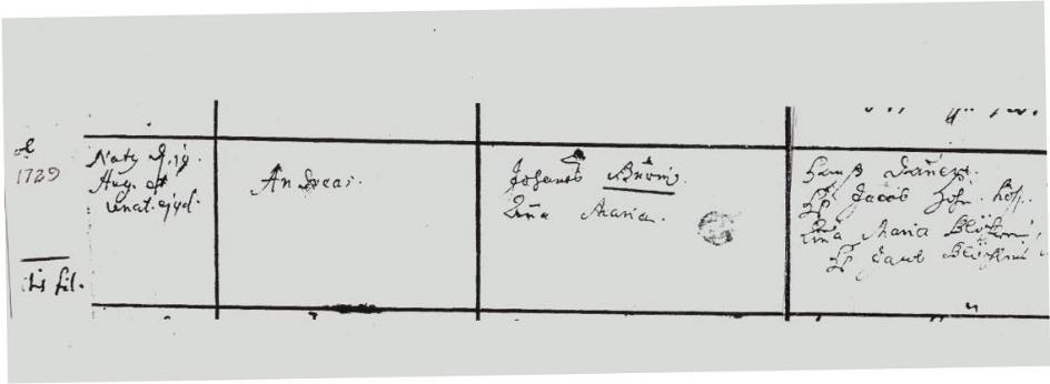 Some church records show that Andreas was admitted into the congregation on Jul 9, 1758 and his wife on Sep 10, 1758.
